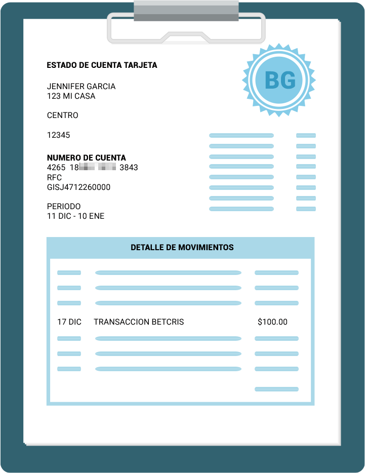 Tu estado de cuenta bancario es necesario para realizar cualquier consulta en relación con depósitos de tarjeta de crédito o débito, así como el pago a la tarjeta o retiros por medio de transferencia bancaria.